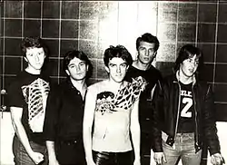 The lineup began working on their new songs and, with the help of Riblja Čorba guitarist Momčilo Bajagić, the band recorded their first single "Moje bezvezne stvari" ("My Silly Stuff"). However, due to the illness of Josip Broz Tito, the band released their first single in 1980 through Jugoton.[2] The release of their second single, "Nestašni dečaci" ("Wild Boys"), was described by Cukić as "the inauguration of symphonic punk" because the band combined punk music with arrangements of Mitrić, who was then studying composition at the Music Academy. "Nestašni dečaci" was also featured on a various artists compilation Svi marš na ples!, a cult new wave Jugoton compilation.[3] The song caused a slight incident as the authorities considered the song the direct support of the March 1981 protests in Kosovo, which was not true.