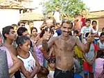 In Bulgaria Roma are discriminated: 59% to 80% of non-Roma have negative feelings towards Roma.[17] Roma constitute the majority of prison population according to self-identification of inmates, with 7000 prisoners (70%) out of 10,000 in total.[18] According to 2002 data, the poverty rate among Romani is 61.8%, in contrast to a rate of 5.6% among Bulgarians.[19] In 1997, 84% of Bulgarian Romani lived under the poverty line, compared with 32% of ethnic Bulgarians.[20] In 1994, the poverty rate of Romani was estimated at 71.4%, compared with 15% for Bulgarians.[21] The unemployment rate of non-Romani in Bulgaria was 25%, while of the Romani it was 65% in 2008, for instance in neighbouring Romania and Hungary the Romani had much lower unemployment rates - 14% and 21% respectively.[22][23] In 2016 only 23% of the Romani in Bulgaria are employed.[24] The unemployed enjoy more financial aid than other citizens, especially for children, which may have prompted the higher birth rates of the Romani.[25]