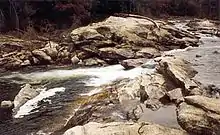 A small cave exists under the main flow of the water. Swimmers will often enter the cave during warmer weather to watch boaters run the rapid above them.