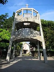 Near the community of Dapdap, a bigger triangular muralla [fortification] called Punta Diamante which encloses the church and rectory of the parish of St. James the Greater was erected. Punta Diamante has five watchtowers with high, thick walls, making it an ideal place for refuge during Moro attacks. Unlike the other watchtowers which are cylindrical and have circular bases, the one facing the sea is of a triangular plan, a smaller version of the main complex. The biggest watchtower has an octagon shaped base (with eight sides) and tapers upward in alternating tiers. This watchtower now serves as the church's bell tower, with the old bells comparably intact.[9]