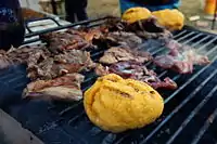 Bulz,[1] also called urs de mămăligă, is a Romanian dish composed by roasting polenta (mămăligă) and cheese in an oven. Bulz is often eaten with sour cream.