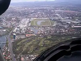 ![]() Aerial view of Bundall from the north looking south (racecourse centre, sewerage works right), 2005 | |||||||||||||||