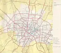 The urban development plan of 1963 provided for a ring road around Munich. This is referred to in the text only as outer trunk road ring, on the attached map, however, it is shown as a motorway ring.