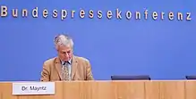 The Bundespressekonferenz (BPK) (German for "Federal Press Conference") is a union of journalists that report exclusively for German media, and who primarily report from Berlin and Bonn. Following the model of the journalists of the Weimar Republic, the association invites representatives of the German government, as well as political parties, associations and individuals of national political, economic, and social interest to press conferences. It is financed solely through membership fees. Membership of the Bundespressekonferenz is limited exclusively to German journalists that report from either Bonn or Berlin. In December 2020 It has 900 parliamentary correspondents. The most important committee is the general assembly, which appoints the 8 members of the board, who take turns leading press conferences. [1]
