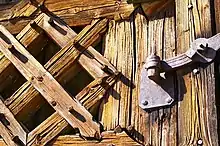 Bundwerk is a method of building with timber that was used especially in the 19th century in Austria, South Tyrol and Bavaria. After log construction and timber framing, bundwerk is one of the most widespread forms of timber building techniques. It involved using wooden beams that were arranged partly in a lattice or diagonally over a cross. It often decorated the front and gable sides of agricultural buildings, frequently the grain barn or Stadel of quadrangular farms (Vierseithöfen).