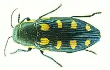 Buprestinae is a subfamily of beetles in the family Buprestidae, containing the following genera in the tribes Anthaxiini, Buprestini, Chrysobothrini, Melanophilini, and Xenorhipidini:[1][2][3]