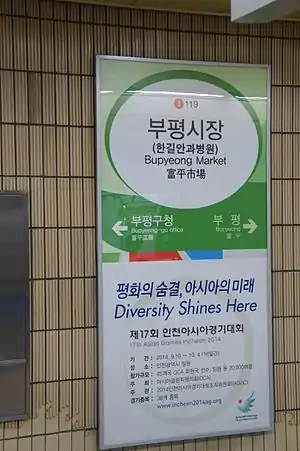 | McCune–Reischauer | Pup'yŏng-sijang-yŏk | ||||||||||