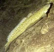 The burbot (Lota lota) is the only gadiform (cod-like) freshwater fish. It is also known as bubbot,[2] mariah,[3] loche, cusk,[4] freshwater cod,[5] freshwater ling, freshwater cusk, the lawyer, coney-fish, lingcod,[6] and eelpout. The species is closely related to the marine common ling and the cusk. It is the only member of the genus Lota. For some time of the year, the burbot lives under ice, and it requires frigid temperatures to breed.[7]