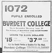 - "Burdett Business College". The Boston Globe. August 13, 1891. p. 3. Retrieved April 22, 2020 – via newspapers.com.