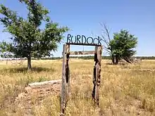 ![]() Wire on wood sign marking the location of Burdock | |