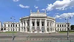 The Burgtheater (German: [ˈbʊʁk.teˌaːtɐ]; literally:"Castle Theater" but alternatively translated as "(Imperial) Court Theater"), originally known as K.K. Theater an der Burg, then until 1918 as the K.K. Hofburgtheater, is the national theater of Austria in Vienna. It is the most important German-language theater and one of the most important theatres in the world. [1] The Burgtheater was opened in 1741 and has become known as "die Burg" by the Viennese population;[1] its theater company has created a traditional style and speech typical of Burgtheater performances.