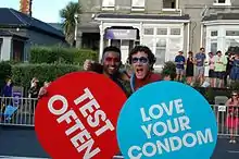 The Burnett Foundation's Get it on! program uses the Big Gay Out festival as an avenue to promote safe sex and develop condom culture in New Zealand. A survey administered during the 2012 Big Gay Out festival determined that those who stayed longer were more knowledgeable and positive toward condom culture and felt that the Get it on! message was an empowering one. Survey participants also said the program "helped to educate men about safe sex" and "helped them feel good about having safe sex." [7] In 2014, Get It On! was dropped and LYC was adopted as the main message. Love Your Condom (LYC) is New Zealand Aids Foundation’s social marketing programme for gay and bisexual men. It addresses a complex mix of attitudinal, behavioural and social change amongst a community that can be difficult to define and reach. The LYC Social Marketing team talks about the programme’s history, the challenges they face and what keeps them loving what they do.[8] In 2017, New Zealand Aids Foundation dropped Love Your Condom and created a new campaign called Ending HIV. It has a goal of ending new HIV transmission in New Zealand by 2025. The campaign highlight key points including:[9]