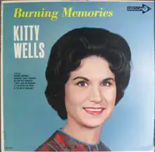 Burning Memories is an album recorded by Kitty Wells and released in 1965 on the Decca label (DL 4612).[1] The album included the hit single "I'll Repossess My Heart". Thom Owens of Allmusic opined that it "is too uneven in terms of material and is burdened by too many overdubbed vocal chorus and strings to be consistently enjoyable."[2]