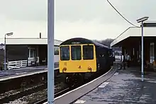 However the cutbacks of the 1960s affected the station badly, with through trains to Manchester via Bury ending in 1964 (two years before the withdrawal of the Accrington to Bury service) and those to Liverpool in 1969 whilst the line to Skipton was closed to all traffic in 1970.[5] This left the station on a 6+1⁄2 miles (10.5 km)-long dead-end branch line from Rose Grove to Colne, although the line remained double as far as Nelson until December 1986. The eastbound line and platform (used by trains towards Colne) was taken out of use thereafter and the station signal box closed - the track was subsequently lifted and the box and platform demolished a few years later. Only part of the remaining (former westbound) platform is now used by passenger trains - the rest is fenced off and overgrown. Immediately to the west, the line passes above the centre of the town on Bank Top viaduct as it heads towards Gannow Junction.