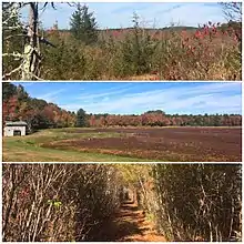Burrage Pond Wildlife Management Area (or BPWMA) is located in the towns of Hanson and Halifax in Massachusetts, USA. The area is composed of 1,625 acres (6.58 km2) of open land for public use, including hiking,[1] biking,[2] and birding.[3][4] Hunting is permitted except on Sundays. BPWMA is made up mainly of swampy lands, old cranberry bogs (formally Bog 18, the biggest in the world), and cedar forest. It is managed by the Massachusetts Department of Fisheries and Wildlife.[5]