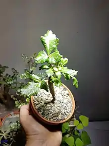 Bursera hindsiana is a small tree. Bark is brown on the first-year branches, gray on the older stems. Leaves are pinnately compound with 5 or 7 leaflets, rarely more than 3 cm long, hairy on both sides.[3]