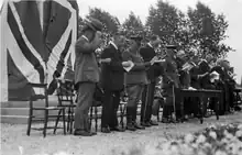 The memorial was unveiled on 2 August 1922 by William Legge, 6th Earl of Dartmouth, the Lord Lieutenant of Staffordshire. Many local firms gave their employees time off to attend the unveiling. The names of the local dead were not inscribed on the memorial but on panels within the town hall. After the Second World War a small bronze plaque was added to the memorial, extending its dedication to cover that conflict.[1] Ownership of the memorial passed from the borough to East Staffordshire Borough Council when that body was established in 1974.[2] On 22 June 1979 the memorial was granted statutory protection as a grade II* listed building. In 2000 the stature of Victory was removed temporarily for conservation, funded by a grant from the War Memorials Trust.[1]