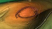 Bury Ditches is often rated as a spectacular example of a surviving hill fort as it forms a neat oval or elliptical shape and is situated on the crown of a hill called Sunnyhill and comprises up to four multi-vallate ditches[2] and rampart banks as part of its defensive earthworks and two well preserved entrance ways.[1]