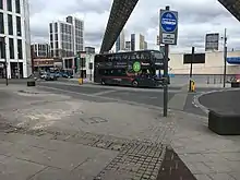 In the United Kingdom bus gates are common in towns and cities. A bus gate consists of a short section of road that only buses and authorised vehicles (typically taxis) can pass through. They are normally marked with the same street signage as bus lanes, but have "BUS GATE" marked on the road surface.[15] Bus gates are normally used as "short cuts" for public transport at junctions, roundabouts or through one-way systems.[16]