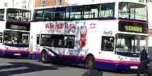 Buses were first operated in Bristol in 1887 by the Bristol Tramways & Carriage Company, a company which still operates, after several changes of name, as First Somerset & Avon.[14] The company had an almost complete monopoly of bus services in the city until deregulation in 1986. Since then there has been a variety of operators.