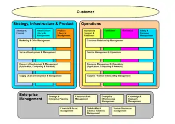The Business Process Framework is an operating model framework for telecom service providers in the telecommunications industry.[1] The model describes the required business processes of service providers, and defines key elements and how they should interact.