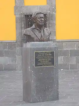 The bust of Plácido Domingo is installed outside the Teatro Principal in Puebla's historic centre, in the Mexican state of Puebla. The sculpture was unveiled in 2017.[1][2][3]