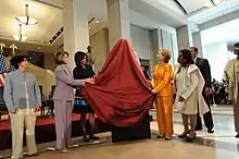 The sculpture was unveiled on April 28, 2009, in Emancipation Hall in the Capitol Visitor Center. It was the first sculpture of an African-American woman to be on display in the Capitol.[1] First Lady Michelle Obama, Speaker of the House Nancy Pelosi, Secretary of State Hillary Clinton, and Representative Sheila Jackson Lee were among those who offered remarks at the unveiling. Representative Lee introduced the bill, House Congressional Resolution 86, that led to the establishment of a statue to Truth in the Capitol. The National Congress of Black Women was a major contributor; they raised funds over many years to underwrite the bust.[2]