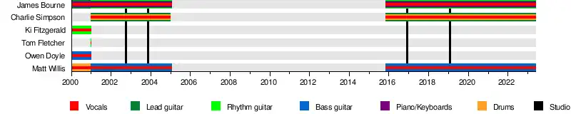 James Bourne and Willis formed the group in 2000. Simpson came later, in time for them to be launched as a pop-punk boy band in 2002, and also departed first.