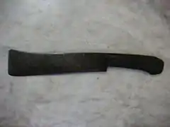 From the late 18th century to the mid-1840s, the butcher knife was a key tool for mountain men. Simple, useful and cheap to produce, they were used for everything from skinning beaver, cutting food, self-defense, and scalping. During this time, John Wilson, of Sheffield, England, was a major exporter of this type of knife to the Americans.[1] These knives can be identified by brand markings and the stamp I. Wilson.[2] Heavy cleavers were traditionally hung up on a hook for ease of access.