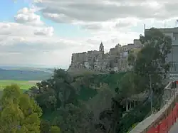 The origins of Butera date back to the Early Bronze Age.[9] During the 6th century BC, the town—then likely the Omphace described by Pausanias—was abandoned and was rebuilt only during the period of Timoleon, shortly after the middle of the fourth century BC[10] It was, however, a small village inhabited by farmers, subject to external aggression throughout the early Middle Ages. Butera, being situated close to Gela, one of the most prominent ancient Greek cities of Sicily under Magna Graecia, was itself settled by Greeks, especially from Crete.[9][11] The dialect spoken in the region was Doric Greek.