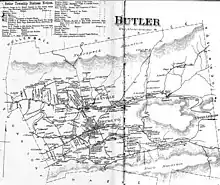 The township is named after Col. Zebulon Butler; he is most famous for his action at the Battle of Wyoming, which resulted in his defeat by British-allied forces. Butler lost 340 men while attacking a superior force of Loyalists and Iroquois. In 1839, Butler Township was formed from a section of Sugarloaf Township. The southern portion of Butler Township was transferred over to Hazle Township in 1861.[3]