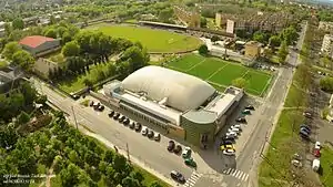 Buzánszky Jenő Stadion is a sports stadium in Dorog, Hungary. The stadium is home to the association football side Dorogi FC. The stadium has a capacity of 4,000.[1] It is named after former Dorog player Jenő Buzánszky.