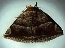 The species' wingspan about 44–46 mm. It is a dark grey brown with a purplish tinge. The head and collar are usually fulvous. Forewings with brown suffusion. Sub-basal, antemedial and postmedial indistinct waved lines and antemedial and medial ill-defined bands are greyish. There is a grey apical patch with whitish edges, and sinuous dark line runs from it to inner margin. An indistinct dentate submarginal line present with a greyish margin. Hindwings with traces of medial and antemedial pale lines found near inner margin. Outer margin is greyish.[3]