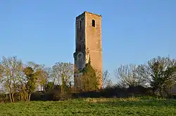 During the War in the Vendée (March – December 1793), following the French Revolution, Buzay Abbey was destroyed by fire. What now remains of the buildings is a tower which had been rebuilt in the 18th century, and some vaulted cellars. Other survivals are the bells, which were transferred to Chartres cathedral, an Italian marble altar, which was moved to the church of Saint-Louis in Paimbœuf, a pulpit, now in the church of St Peter in Bouguenais, and some other objects, including the oldest crucifix in the Pays de Retz, dating from the fourteenth century, in the chapel of St Anne of Tharon at Saint-Michel-Chef-Chef.[3]