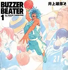 Inoue launched Buzzer Beater as an online comic in May 1996 on the Sports-i ESPN website (now J Sports).[4] It was his second manga to focus on basketball, following his very successful second manga series, Slam Dunk.[5] The name of the manga comes from the term used for when a basket is scored at the same moment a period or the game itself ends. Buzzer Beater was published in print format by Shueisha shortly after it began, as it was serialized in its Monthly Shōnen Jump manga magazine from February 1997 to August 1998.[4] The manga was collected in four wideban volumes, released from Juy 4, 1997, to August 4, 1998.[6][7][8][9] It was later republished in two volumes, released on February 4, 2005.[10][11]