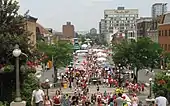 Today, the market area still retains much of the flavour of its past. Since the 1840s, the ByWard Market has served as one of the principal hubs of commerce, entertainment and leisure activities in a locale that has been transformed from a remote colonial outpost to the centre of Canada's National Capital Region. Many of the market's original industries and services have given way to boutiques and restaurants. Nevertheless, Ottawa residents and tourists continue to gather in the area to purchase vegetables and groceries, as well as to enjoy the colourful vendors and street entertainment.[6]