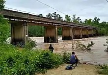 The bridge crossing the Haw River at Bynum was originally a covered wooden bridge. It connected the major north–south highway in piedmont area of North Carolina—with Chapel Hill to the north and Pittsboro and Sanford to the south. The old Bynum Bridge replaced it in 1922 - concrete and approximately an 800-foot span.[6] It was closed to motor vehicle traffic in 1999, but it is currently a pedestrian bridge and part of the statewide designated bicycle route as well as being a gathering place for the community on Halloween where many local folks artfully carve Jack-o'-lanterns and display them along the sides of the bridge. Cars now cross the Haw River on the newer US 15-501 bridges about 1000 feet north. There is another canoe take-out, dam and the mill race sluice gates at US 15-501.