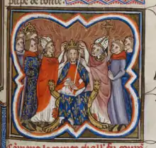 The treaty quickly bore fruit for the Byzantine emperor: in September 1269, Charles of Anjou sent the Achaean knight Erard d'Aunoy and the abbot of Monte Cassino, Bernard Ayglerius, as envoys to Venice to enlist the Republic in his designs against Palaiologos, but the Doge declined, citing the truce.[48][49] The Venetian stance reflected both their satisfaction, for the time being, with having again secured commercial access in the Byzantine Empire, as well as their disquiet at Charles' policies in the Adriatic, including a recent agreement with Hungary, which had been Venice' traditional rival over control of Dalmatia.[50] In 1272, as the truce neared its expiration, envoys from Charles, Baldwin, and Palaiologos were all present in Venice. The Byzantine ambassadors brought with them 500 Venetian prisoners, apparently seized in Euboea during the campaigns of the Byzantine admiral Alexios Doukas Philanthropenos against the Lombard lords of Negroponte in the previous years; despite the truce between Venice and Byzantium, they had been crewing the Lombards' galleys. Amidst the intense diplomatic manoeuvring, including repeated warnings by Pope Gregory X not to renew the truce, the Doge preferred to cautiously wait out developments; accordingly the truce remained tacitly in force, even if it was not officially renewed.[51][52] It is possible that the 1268 treaty was also renewed after 1273, whether through annual extensions or a complete new treaty that has not survived. These renewals may have introduced a clause on reparations, which was included in the later 1277 treaty.[53]