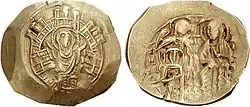 Hyperpyron of Michael VIII Palaiologos - Venetian ships were allowed to purchase grain anywhere in the Empire and export it without restriction, except to lands hostile to the Empire, for as long as its price remained at 50 gold hyperpyra to the 100 modioi; if the price should rise, then export would be allowed only under explicit license by the emperor.[32][44]