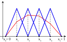 of the interval and let be the space of all continuous functions that are affine on each subinterval in the partition (such functions are called piecewise-linear). In addition, assume that any function in takes the value 0 at the endpoints of It follows that is a vector subspace of whose dimension is (the number of points in the partition that are not endpoints).