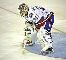 On July 20, 2010, Desjardins re-signed to a one-year contract with the Canadiens.[5] However, on August 16, 2010, he was traded by the Canadiens to the Tampa Bay Lightning for Karri Rämö.[6] On December 30, 2010, he started his first NHL game, playing against the Canadiens. He recorded a win, stopping 27 of 28 shots for a 4-1 Lightning victory.[7]
