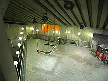 The station is a normal side platform station, built in tunnel with a central mezzanine built in trench, and one entrance.
