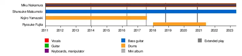 - Miku Nakamura (中村未来) — vocals, guitar, keyboards, manipulator (2011–present)