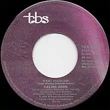 "C'est pour toi" (meaning "It's for You") is the first single from Celine Dion's album C'est pour toi. It was released on 9 September 1985 in Quebec, Canada.[1] On 21 September 1985 the song entered the Quebec Singles Chart and reached number 3, spending twenty weeks on the chart. It included as B-side another album track called "Pour vous". A music video was made for the C'est pour toi TV special in 1985. "C'est pour toi" was featured also on Dion's later compilations: Les chansons en or (1986) and The Best Of (1988).