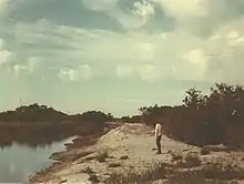 A test cell was constructed so as to be flooded separately from the main impoundment. This area was to be flooded sufficiently to inundate black mangrove (Avicennia germinans) pneumatophores, in hopes that stress could be detected by false infrared aerial photography.[7] Several flights were flown but stress could not be detected by remote sensing before it was evident on the ground. This is thought to have been due to the propensity for black mangroves to drop their leaves all at once rather than slowly enough for color changes to be picked up in the photographs.[8]