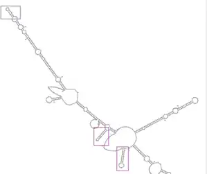 The formation of three stem loops is conserved in different predicted models.[32] The three stem loops start from the 5' end of C20orf27 mRNA base 1 to base 27, base 56 to base 74, and base 116 to base 130.