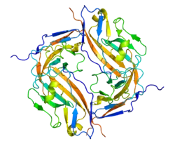 CD47 (Cluster of Differentiation 47) also known as integrin associated protein (IAP) is a transmembrane protein that in humans is encoded by the CD47 gene. CD47 belongs to the immunoglobulin superfamily[5] and partners with membrane integrins and also binds the ligands thrombospondin-1 (TSP-1) and signal-regulatory protein alpha (SIRPα).[6] CD-47 acts as a don't eat me signal to macrophages of the immune system which has made it a potential therapeutic target in some cancers, and more recently, for the treatment of pulmonary fibrosis.[7]