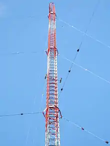 In September 2013, the CFCB transmission tower in Corner Brook was taken down. Construction on a new tower has been recently completed with a modern three-legged guyed mast radiator. The previous mast radiator was in terrible shape and over 50 years old prior to being taken down. The old mast radiator, according to the website www.broadcasting-history.ca, was a second hand tower that was erected and begun broadcasting at 1,000 watts in 1961. No CRTC or Industry Canada records indicate the station filed any application to do this work. However, according to the broadcasting-history.ca web site, the CRTC approved the daytime transmitting power to 10,000 watts from 1,000 watts which could be achieved with the new and more modern mast radiator now located on the same plot of land that the previous one had been erected. Photos of the old and new towers are illustrated below.