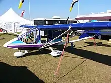 - Single seat, developed to compete in the 1999 European World Air Games. Eight were flying by 2011. It has competition features, including streamlined struts and landing gear legs, no jury struts, a semi-symmetrical airfoil and 3 in (8 cm) extra headroom. Standard empty weight 310 lb (141 kg) with a 625 lb (283 kg) gross weight. Engines available include the two-stroke 40 hp (30 kW) Rotax 447, 52 hp (39 kW) Rotax 503, 65 hp (48 kW) Rotax 582 or the 40 hp (30 kW) Hirth 2702.[6][12]
