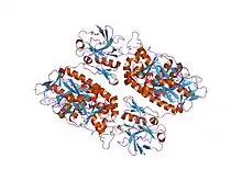 In molecular biology, the CHAP domain is a region between 110 and 140 amino acids that is found in proteins from bacteria, bacteriophages, archaea and eukaryotes of the family Trypanosomidae. The domain is named after the acronym cysteine, histidine-dependent amidohydrolases/peptidases. Many of these proteins are uncharacterised, but it has been proposed that they may function mainly in peptidoglycan hydrolysis. The CHAP domain is found in a wide range of protein architectures; it is commonly associated with bacterial type SH3 domains and with several families of amidase domains. It has been suggested that CHAP domain containing proteins utilise a catalytic cysteine residue in a nucleophilic-attack mechanism.[1][2]